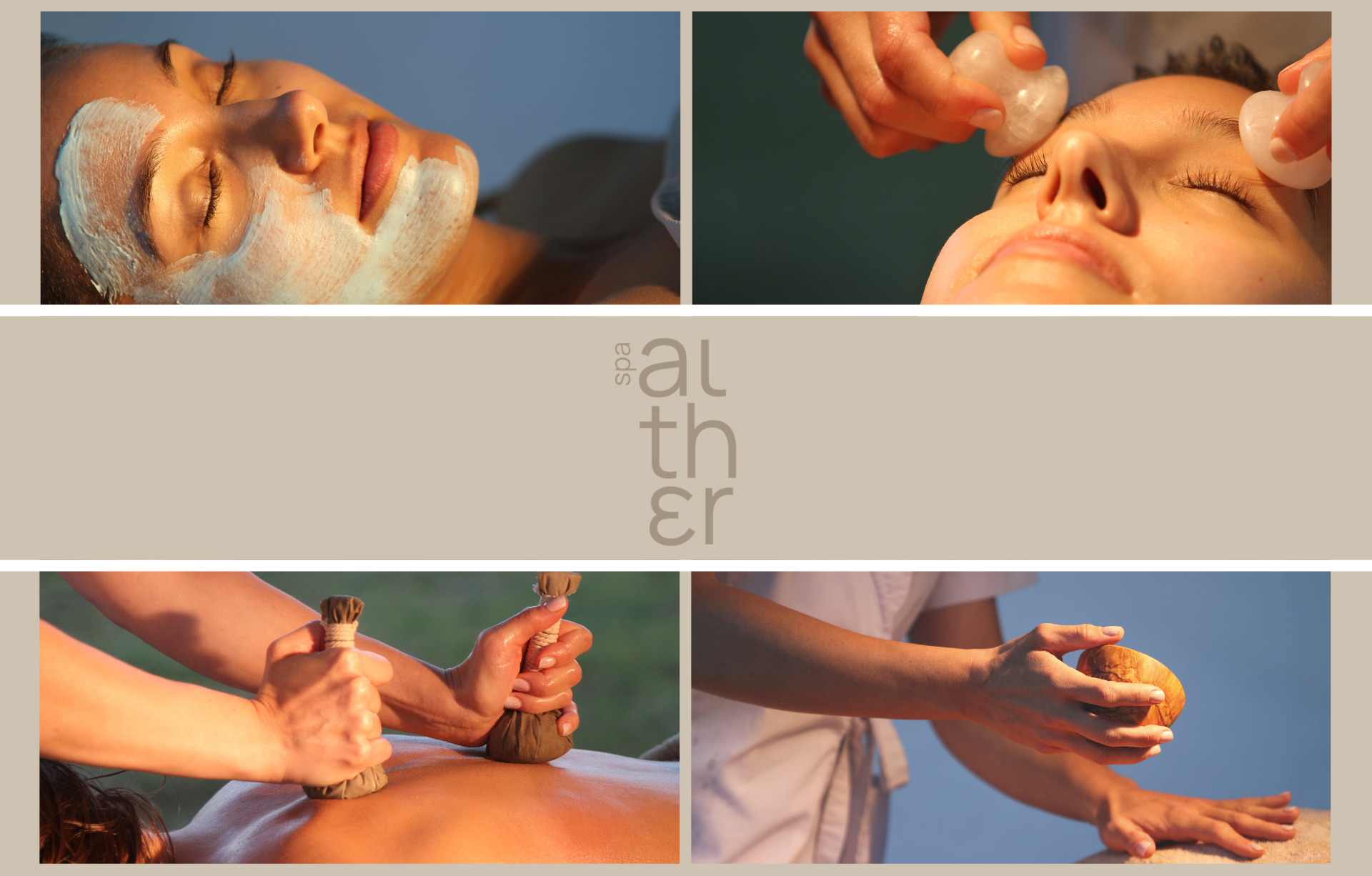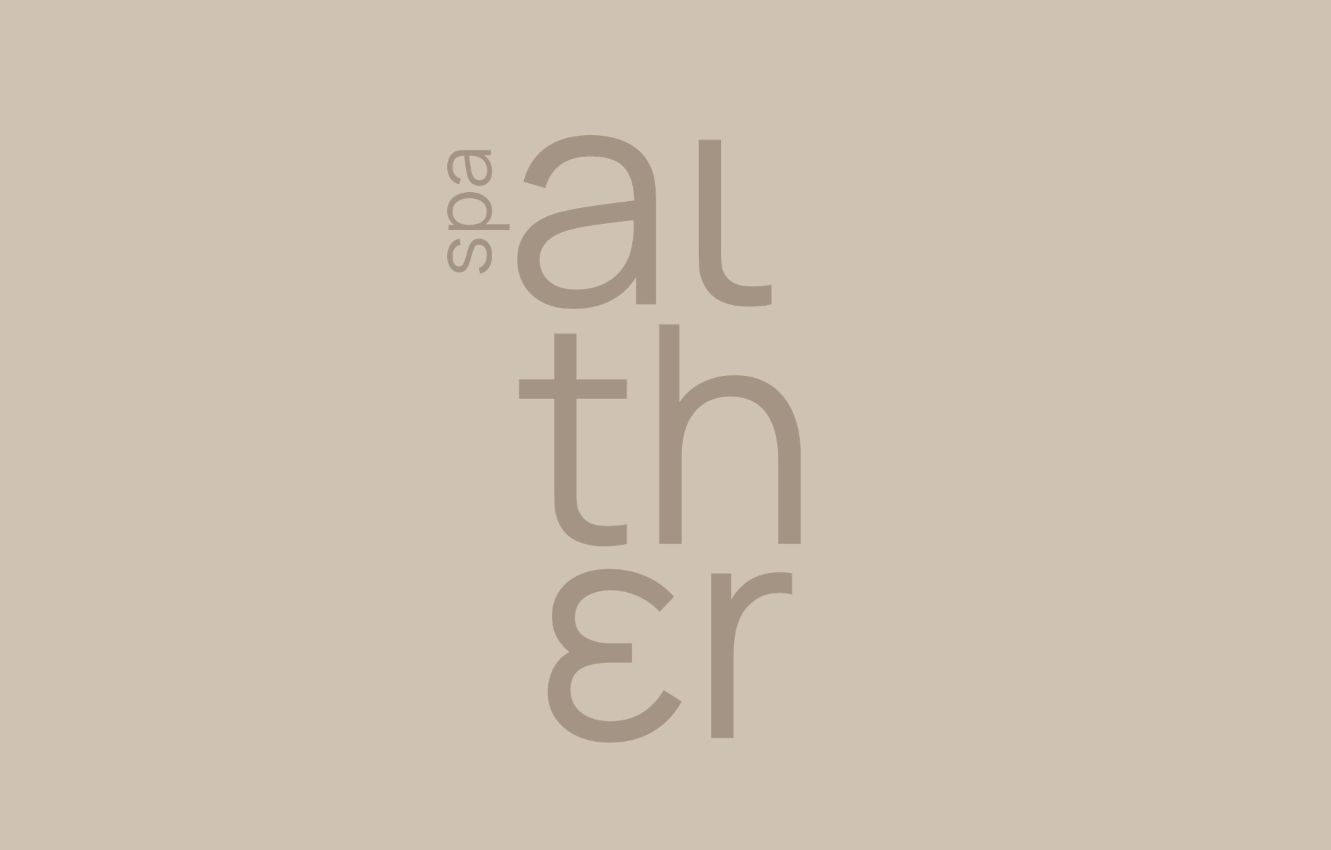 The spa’s visual identity reflects this philosophy by blending Greek heritage with modern design. The logo features a purely typographic composition where the word “AITHER” is arranged in three stacked tiers, creating a distinctive rhythm like a contemporary art piece. Subtle Greek-inspired details in the lowercase letters “i” and “e” reference its cultural roots while maintaining a clean, modern aesthetic.